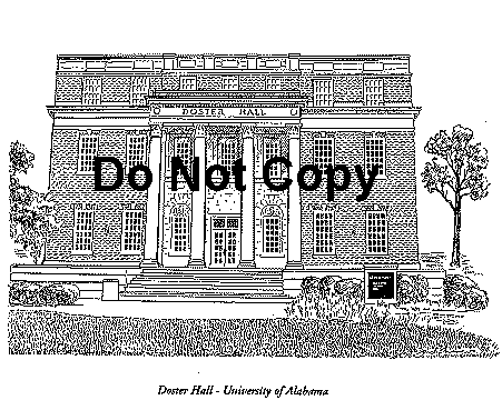 Prints of ink drawings by Jack Andrews, of fraternities, sororities, and other buildings at the University of Alabama Doster Hall.
